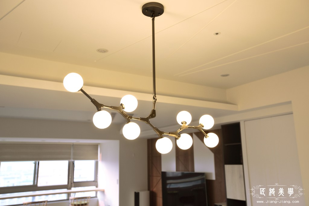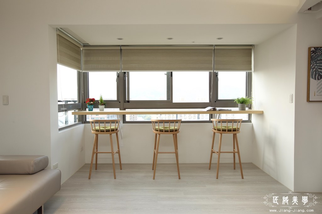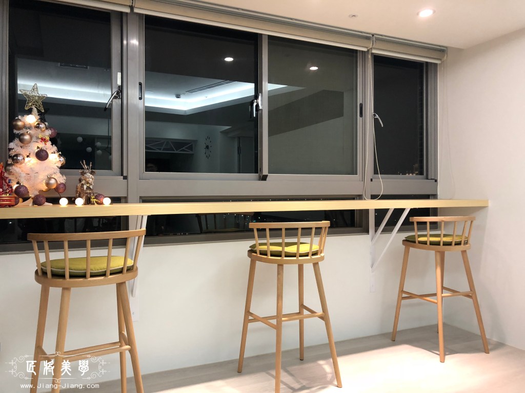 運用了北歐混合美式,做為整體風格的主軸,空間背景以訂製鐵件作為點綴,為了一飽高層樓美景,在窗邊設置吧台座位區,充分享受自然光線,使家中增添一處閱讀小憩的空間,成為凝聚家人在此對話與分享的最佳場域。