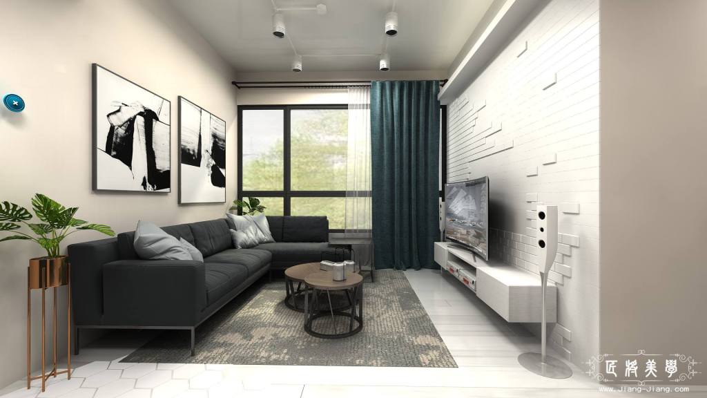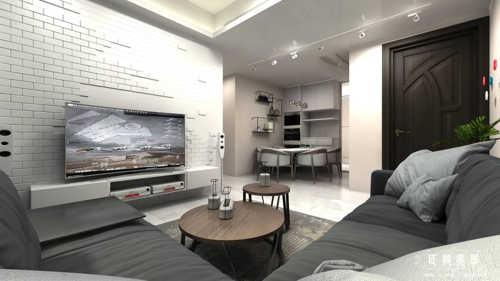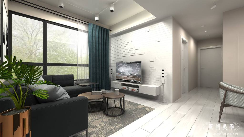 進入室內擁有光線充足的公共空間,目光所及之處都讓輕柔粉橘的色調所擁簇著,在單一電視牆中配置不規則磁磚,突顯出獨特的立體感,格外的脫穎出整個空間的亮點。