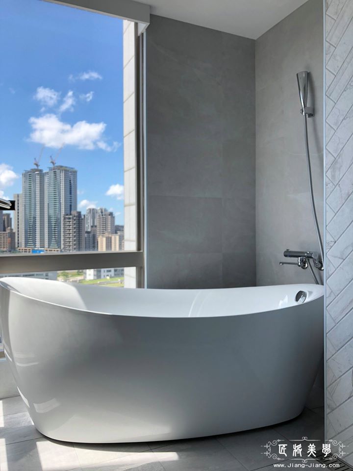 廚房選用幾何地磚圖形,點綴出現代摩登度假風情,衛浴空間採用精品飯店概念,