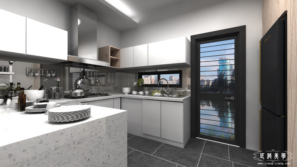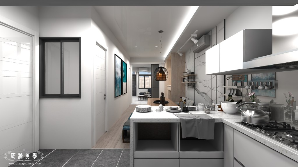 科技杰材串聯淡雅佛堂,反差結合,以自然色系為主軸,放大空間視覺,造型拉門界定二者,維持穿透感視野,築造原味素材散發魅力,薰陶成也。