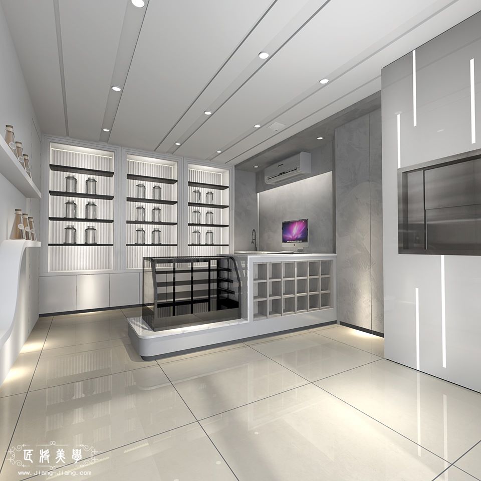 實驗室方向設計案,中醫不再嚴肅典型,白色搭配淺灰延伸,精品展示打造質感,開放區域通透明亮,顛覆常規詮釋空間。