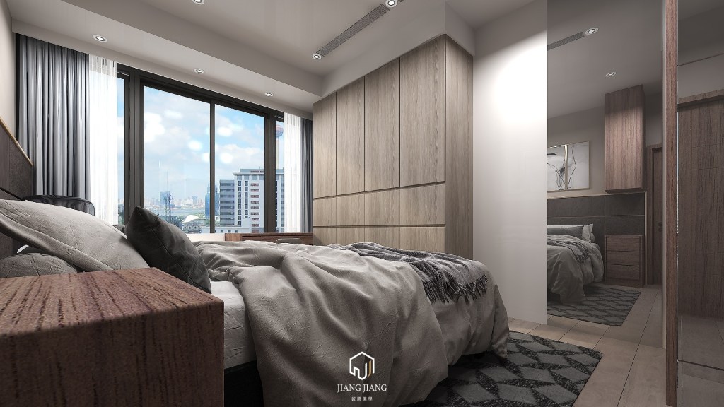 中規中矩的設計顯著主人家低調個性,電視牆面是業主強調需求的做法,空間呈現長虹建設大器俐落的訴求,每個案子都用心專屬客製設定,結合家中每個成員不同的生活習慣,達到匠心獨具設計風格的幸福居所。