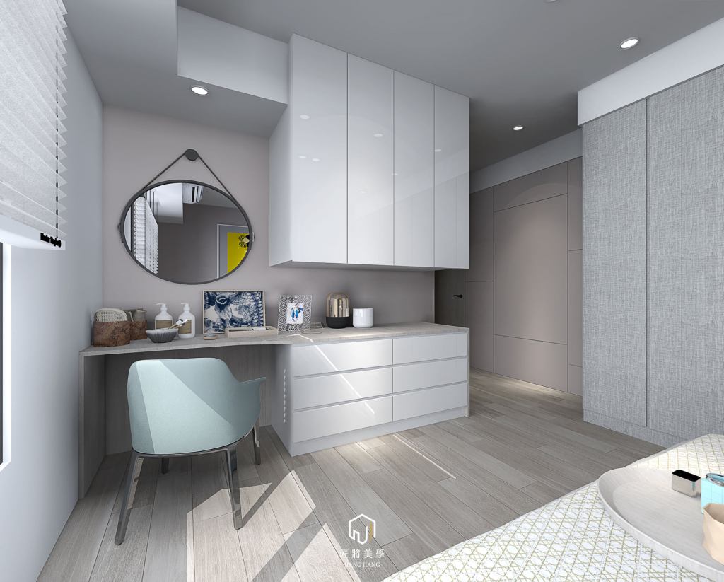一對優質夫妻的居所,雅緻的房間配上溫潤的木地板,半開放式書房選用較深的木紋色—-屬於沈穩的男主人,主臥室清爽的櫃體搭上風趣的油漆跳色當主題,為生活多添幾分趣味—-屬於女主人的喜好設計裝潢不是只有屬於新屋的權利,好的設計在舊屋翻新更能找到它的價值!
