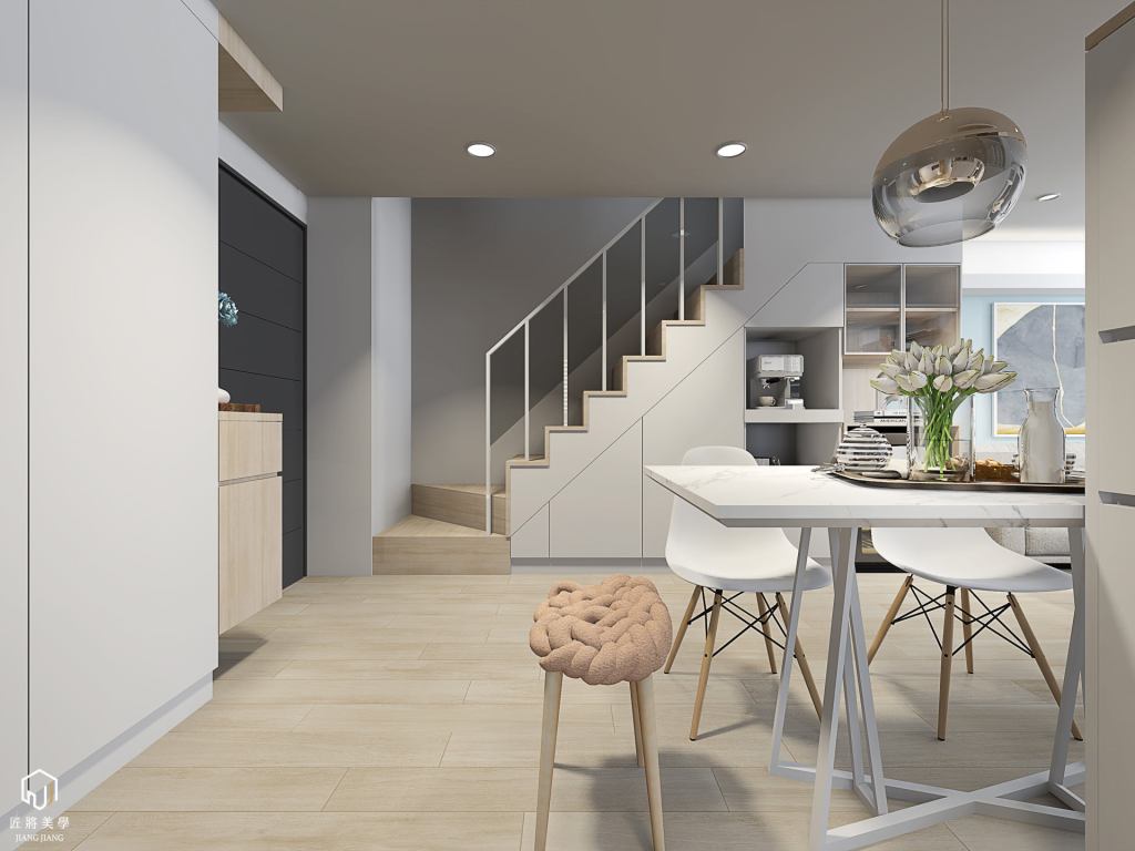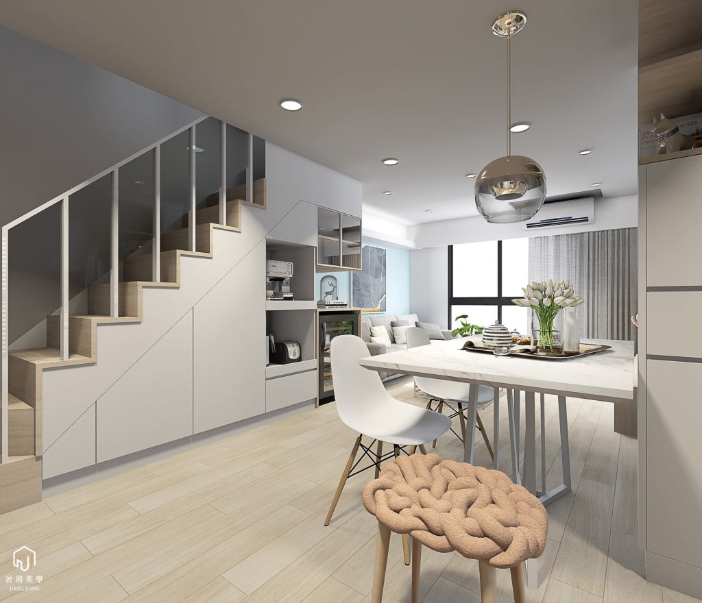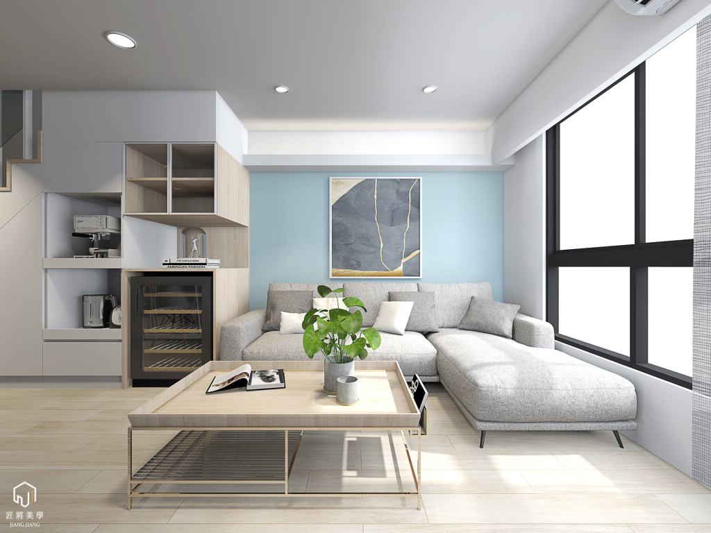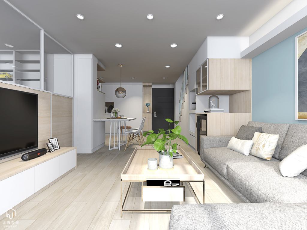 反向思考小空間表現大尺度,木質系勾勒打破格局封閉感,空間展延以色彩調區隔層次,量體層疊北歐語彙溫暖空間。